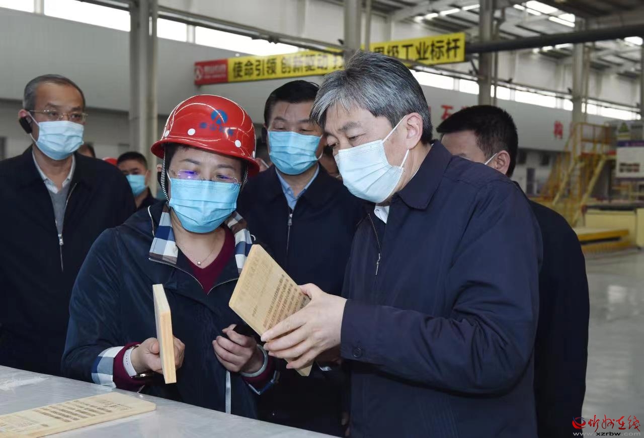 泰山石膏忻州有限公司產(chǎn)銷量均居同行業(yè)首位,被譽(yù)為中國(guó)紙面石膏板行業(yè)的領(lǐng)跑者。朱曉東深入企業(yè)車間宣講黨的二十屆二中全會(huì)和習(xí)近平總書記在全國(guó)兩會(huì)期間重要講話及全國(guó)兩會(huì)精神,聽取負(fù)責(zé)人工作匯報(bào),詳細(xì)了解項(xiàng)目建設(shè)、企業(yè)生產(chǎn)經(jīng)營(yíng)、產(chǎn)品研發(fā)、安全生產(chǎn)等方面的情況。他指出,要把學(xué)習(xí)貫徹黨的二十屆二中全會(huì)精神與學(xué)習(xí)宣傳貫徹黨的二十大精神結(jié)合起來(lái),與貫徹落實(shí)全國(guó)兩會(huì)精神結(jié)合起來(lái),在學(xué)深悟透、宣講培訓(xùn)、知行合一上持續(xù)用力,深刻理解和準(zhǔn)確把握習(xí)近平總書記關(guān)于“牢牢把握高質(zhì)量發(fā)展這個(gè)首要任務(wù)”和“四個(gè)必須”的重要論述,深入落實(shí)“三個(gè)更好統(tǒng)籌”,確保黨的二十大精神在忻州落地生根、開花結(jié)果。