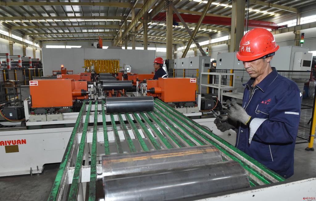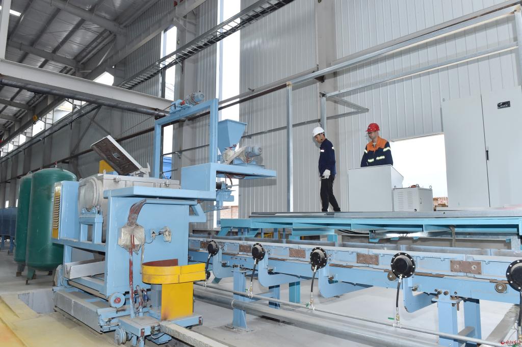 在山西榮安智能體育制造有限公司觀摩檢查年產(chǎn)10萬噸杠啞鈴體育用品及精密鑄件配套150萬件杠啞鈴項(xiàng)目建設(shè)情況。馮曉磊