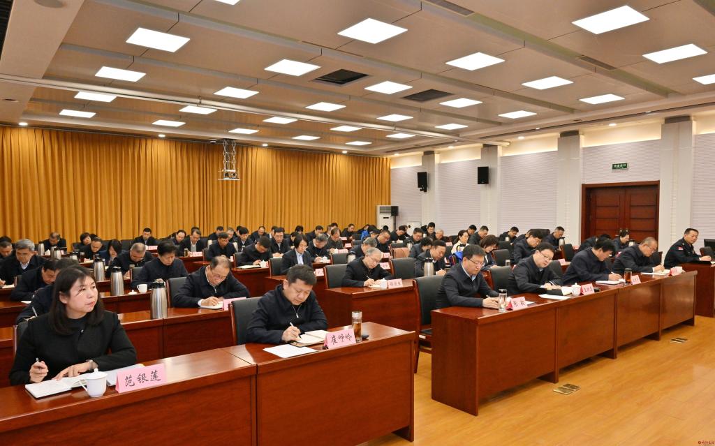 會議會場。馮曉磊攝 3月15日,市委常委會召開擴(kuò)大會議,傳達(dá)學(xué)習(xí)貫徹習(xí)近平總書記在全國兩會期間重要講話和全國兩會精神,認(rèn)真貫徹落實(shí)3月12日省委常委會會議精神,研究部署我市具體落實(shí)工作。市委書記朱曉東主持會議并講話,市委副書記、市長李建國傳達(dá)全國兩會精神。 會議指出,剛剛閉幕的全國兩會,是一次高舉旗幟、真抓實(shí)干、團(tuán)結(jié)奮進(jìn)的大會,進(jìn)一步凝聚了共識、明確了任務(wù)、堅(jiān)定了信心,必將鼓舞和激勵全國各族人民更加緊密地團(tuán)結(jié)在以習(xí)近平同志為核心的黨中央周圍,萬眾一心,拼搏奮進(jìn),為以中國式現(xiàn)代化全面推進(jìn)強(qiáng)國建設(shè)、民族復(fù)興偉業(yè)而不懈奮斗。習(xí)近平總書記在全國兩會期間發(fā)表的重要講話,高屋建瓴、視野宏闊、思想深邃、內(nèi)涵豐富,具有很強(qiáng)的政治性、戰(zhàn)略性、指導(dǎo)性和針對性,為我們做好各項(xiàng)工作提供了根本遵循。全市各級各部門要把學(xué)習(xí)宣傳貫徹習(xí)近平總書記在全國兩會期間的重要講話和全國兩會精神作為當(dāng)前和今后一個時期的重大政治任務(wù),與學(xué)習(xí)貫徹黨的二十大精神、學(xué)習(xí)貫徹習(xí)近平總書記對山西工作的重要講話重要指示精神有機(jī)結(jié)合起來,一體學(xué)習(xí)領(lǐng)會、一體貫徹落實(shí),堅(jiān)定不移沿著習(xí)近平總書記指引的道路奮勇前進(jìn)。要深刻感悟過去一年黨和國家事業(yè)取得的重大成就,堅(jiān)定捍衛(wèi)“兩個確立”、堅(jiān)決做到“兩個維護(hù)”;要深刻領(lǐng)會習(xí)近平總書記重要講話精神實(shí)質(zhì),牢牢把握工作主動權(quán);要精準(zhǔn)把握黨中央對當(dāng)前形勢的科學(xué)判斷和總體要求,進(jìn)一步堅(jiān)定加快發(fā)展的信心和決心。 會議強(qiáng)調(diào),今年是中華人民共和國成立75周年,是實(shí)現(xiàn)“十四五”規(guī)劃目標(biāo)任務(wù)的關(guān)鍵一年,做好今年工作意義重大。各級各部門要全面對標(biāo)全國兩會關(guān)于做好今年工作的部署安排,抓牢抓實(shí)各項(xiàng)具體工作,全力完成今年經(jīng)濟(jì)社會發(fā)展各項(xiàng)目標(biāo)任務(wù)。要持續(xù)鞏固經(jīng)濟(jì)回升向好態(tài)勢,全面落實(shí)黨中央穩(wěn)中求進(jìn)、以進(jìn)促穩(wěn)、先立后破的總要求和省委工作部署,緊盯經(jīng)濟(jì)社會發(fā)展預(yù)期目標(biāo),加強(qiáng)經(jīng)濟(jì)運(yùn)行監(jiān)測調(diào)度,持續(xù)攻堅(jiān)項(xiàng)目建設(shè),抓好市場主體培育,釋放消費(fèi)需求,優(yōu)化營商環(huán)境,全力以赴抓好實(shí)體經(jīng)濟(jì)發(fā)展。要加快培育發(fā)展新質(zhì)生產(chǎn)力,充分發(fā)揮科技創(chuàng)新對產(chǎn)業(yè)的引領(lǐng)帶動作用,以更大力度推動產(chǎn)業(yè)轉(zhuǎn)型升級、實(shí)施制造強(qiáng)忻戰(zhàn)略、發(fā)展數(shù)字經(jīng)濟(jì),促進(jìn)產(chǎn)業(yè)鏈創(chuàng)新鏈人才鏈深度融合,不斷塑造發(fā)展新動能新優(yōu)勢。要全面深化改革創(chuàng)新,用好改革開放關(guān)鍵一招,深入實(shí)施創(chuàng)新驅(qū)動發(fā)展戰(zhàn)略,持續(xù)深化重點(diǎn)領(lǐng)域改革,加快建設(shè)開放發(fā)展前沿城市,充分激發(fā)高質(zhì)量發(fā)展的動力活力。要扎實(shí)推進(jìn)美麗忻州建設(shè),深入踐行“綠水青山就是金山銀山”的發(fā)展理念,深入落實(shí)黃河流域生態(tài)保護(hù)和高質(zhì)量發(fā)展戰(zhàn)略,強(qiáng)化污染防治攻堅(jiān),堅(jiān)持山水林田湖草沙系統(tǒng)治理,持續(xù)推動發(fā)展方式綠色轉(zhuǎn)型,筑牢高質(zhì)量發(fā)展綠色屏障。要持續(xù)增進(jìn)民生福祉,深入實(shí)施就業(yè)優(yōu)先戰(zhàn)略,努力辦好人民滿意的教育,高標(biāo)準(zhǔn)實(shí)施強(qiáng)醫(yī)工程,健全多層次社會保障體系,全面推進(jìn)鄉(xiāng)村振興,不斷增強(qiáng)人民群眾的獲得感幸福感安全感。要全力維護(hù)社會大局穩(wěn)定,深入貫徹總體國家安全觀,堅(jiān)決維護(hù)國家政治安全;深入開展安全生產(chǎn)治本攻堅(jiān)三年行動,嚴(yán)格落實(shí)“三管三必須”要求,深化落實(shí)“543”工作機(jī)制,強(qiáng)化預(yù)警監(jiān)測和隱患排查,全力保障人民群眾生命財產(chǎn)安全;堅(jiān)持和發(fā)展新時代“楓橋經(jīng)驗(yàn)”,加快矛盾糾紛“一站式”化解平臺規(guī)范化建設(shè),健全立體化信息化治安防控體系。要廣泛凝聚高質(zhì)量發(fā)展合力,全力支持和保障人大及其常委會依法履職盡責(zé),不斷加強(qiáng)和改進(jìn)新時代人大工作;充分發(fā)揮人民政協(xié)“重要陣地、重要平臺、重要渠道”作用,深化專門協(xié)商機(jī)構(gòu)建設(shè);大力支持工商聯(lián)、無黨派人士履行職能,積極發(fā)揮群團(tuán)組織作用,進(jìn)一步構(gòu)建和深化大統(tǒng)戰(zhàn)工作格局。要持續(xù)加強(qiáng)黨的建設(shè),牢牢把握新時代黨的建設(shè)總要求,持續(xù)鞏固拓展主題教育成果,按照黨中央統(tǒng)一部署開展好集中性紀(jì)律教育,切實(shí)把黨的全面領(lǐng)導(dǎo)貫穿到經(jīng)濟(jì)社會發(fā)展各領(lǐng)域全過程。要堅(jiān)持黨建引領(lǐng),組織開展基層