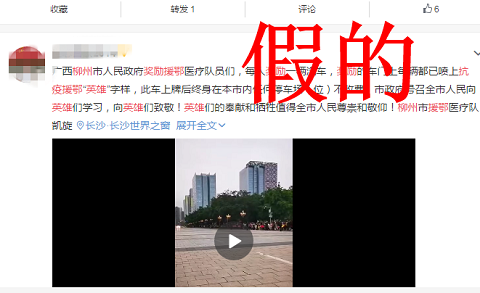 在一些微信群里,“柳州市獎(jiǎng)勵(lì)援鄂醫(yī)療隊(duì)員們,每人獎(jiǎng)勵(lì)一輛汽車,獎(jiǎng)勵(lì)的車門上每輛都已噴上抗疫援鄂‘英雄’字樣,此車上牌后終身在本市內(nèi)任何停車場(chǎng)(位)不收費(fèi)”的信息比比皆是。在抖音和微博平臺(tái),還有不少網(wǎng)友以該信息為基礎(chǔ),配上了迎接援鄂抗疫英雄回柳的畫面,制作成了短視頻在網(wǎng)絡(luò)上傳播,加劇了虛假信息進(jìn)一步傳播。