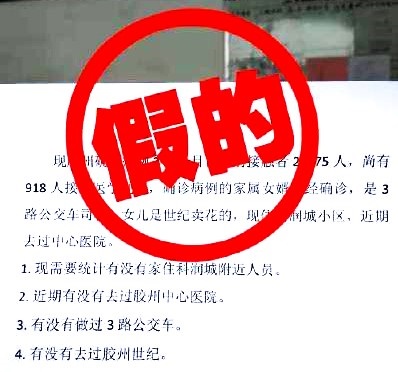 近日,有關(guān)青島新增兩名確診病例的信息在網(wǎng)上流傳,稱“膠州密切接觸者21375人,尚有918人接受醫(yī)學(xué)觀察”、“患者女婿是3路公交車司機!已經(jīng)確診了”等。