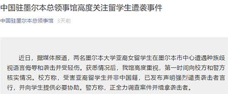 中國駐墨爾本總領(lǐng)事館微信公號截圖