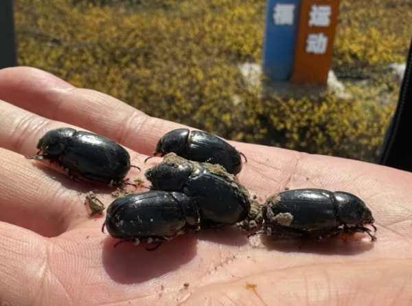 圖為疑禾犀金龜 真相:近日,新疆生產(chǎn)建設(shè)兵團(tuán)143團(tuán)(駐地在新疆石河子市附近)文化體育廣場(chǎng)再現(xiàn)大量黑色昆蟲,部分群眾擔(dān)憂這是災(zāi)難或是地震的前兆。對(duì)此,石河子大學(xué)農(nóng)學(xué)院植保系副教授雷勇輝表示,此昆蟲為疑禾犀金龜,大量出現(xiàn)符合其生物習(xí)性,屬于正?,F(xiàn)象,“每年開春氣溫回暖時(shí),疑禾犀金龜就開始羽化出來了。每年這個(gè)時(shí)間是它繁殖的季節(jié),跟地震和其他的一些自然災(zāi)害現(xiàn)象沒有任何關(guān)系?!睋?jù)了解,疑禾犀金龜已不是第一次在此出現(xiàn)。2023年4月中上旬,在143團(tuán)及石河子市區(qū)也出現(xiàn)了大量疑禾犀金龜。(來源:“石河子零距離”微信公眾號(hào))