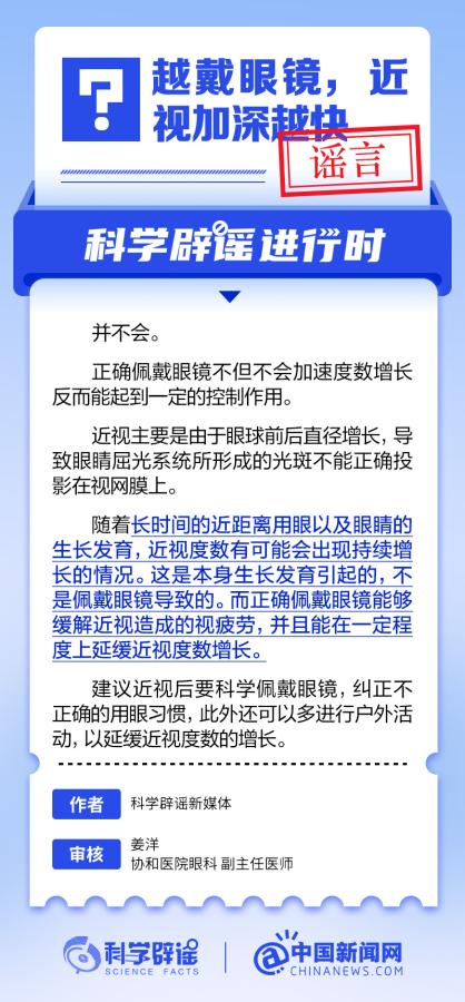 中新網(wǎng)6月6日電 6月6日是全國(guó)愛(ài)眼日。隨著大家越來(lái)越重視護(hù)眼,人們開(kāi)始自發(fā)地從網(wǎng)上查找一些護(hù)眼知識(shí),與此同時(shí),網(wǎng)上也出現(xiàn)了很多的護(hù)眼誤區(qū)。有哪些常見(jiàn)的所謂“護(hù)眼知識(shí)”其實(shí)是誤區(qū)?眼鏡度數(shù)配高點(diǎn)好還是配低點(diǎn)好?詳情↓ (來(lái)源:@科學(xué)辟謠 中國(guó)新聞網(wǎng)微博)