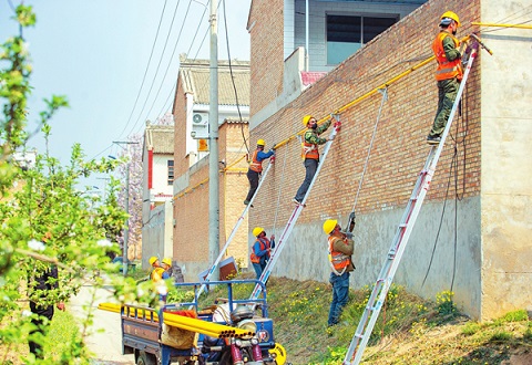 四月八日,施工人員在運(yùn)城市鹽湖區(qū)上郭鄉(xiāng)中陳莊村架設(shè)天然氣管道。該區(qū)大力推進(jìn)清潔能源建設(shè)推廣步伐,加快“煤改氣”“煤改電”重點(diǎn)民生項(xiàng)目工程建設(shè),對農(nóng)村現(xiàn)有住宅進(jìn)行節(jié)能改造,提高保溫隔熱效能。(任志堅(jiān)攝)