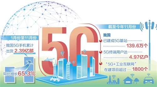 我國5G網絡建設和應用正加速推進。截至今年11月份,已建成5G基站139.6萬個,5G終端用戶達到4.97億戶,“5G+工業(yè)互聯(lián)網”在建項目超過1800個。