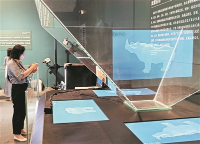 在“數(shù)說(shuō)犀尊”展覽上,展廳綜合運(yùn)用了高清三維掃描、超高清顯示、人工智能、紅外感應(yīng)、增強(qiáng)現(xiàn)實(shí)等科技手段展示文物研究成果??萍既?qǐng)?bào)記者 洪星攝