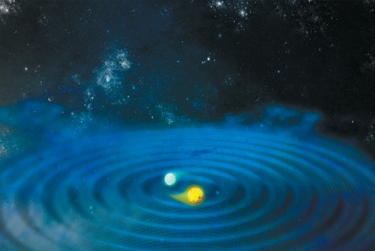 我們可以把時(shí)空想象成平靜的水面,有質(zhì)量的物體能讓時(shí)空本身發(fā)生彎曲。如果宇宙中有質(zhì)量的物體發(fā)生劇烈的加速運(yùn)動(dòng),如超新星爆發(fā)、兩個(gè)巨大星體發(fā)生碰撞、兩個(gè)致密星體并合(中子星與黑洞這類星體的碰撞與并合),就像是往平靜的水面扔進(jìn)了石頭,讓時(shí)空本身泛起“漣漪”?!皾i漪”攜帶著波源天體激烈動(dòng)蕩的信息和關(guān)于引力本質(zhì)的線索,以光速向遠(yuǎn)處傳播,這種時(shí)空“漣漪”就是引力波。