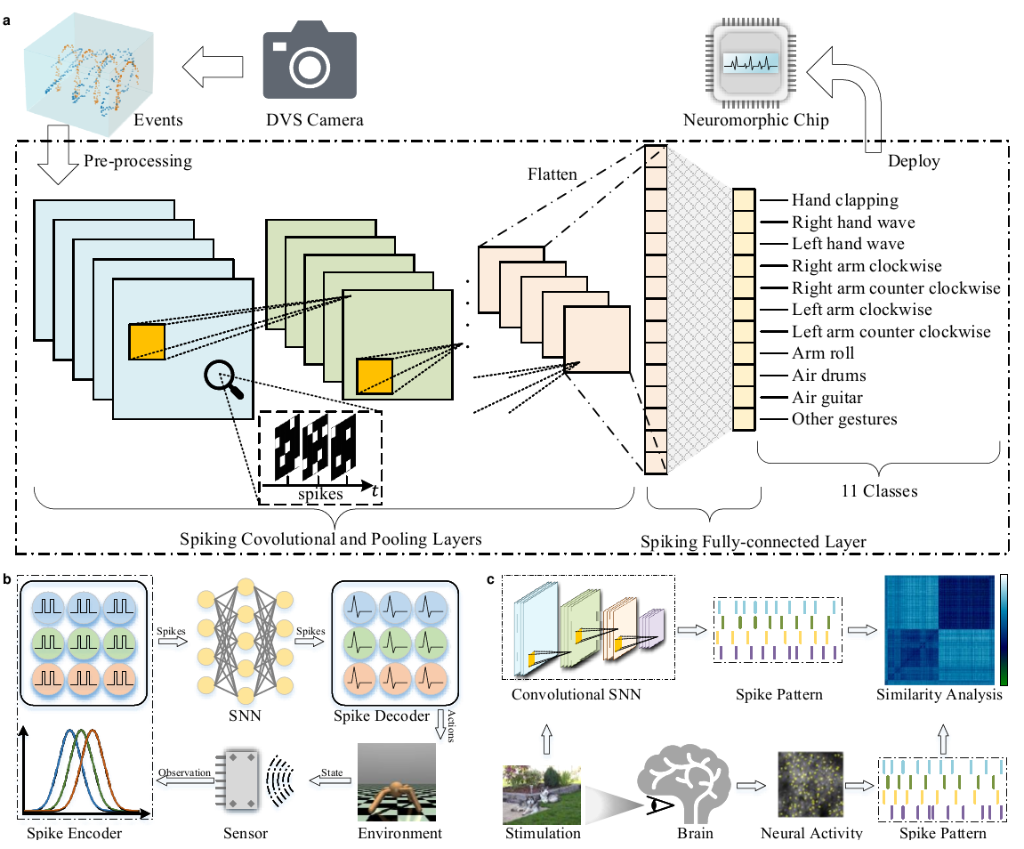 脈沖神經(jīng)網(wǎng)絡(luò)被譽(yù)為第三代神經(jīng)網(wǎng)絡(luò),因其稀疏計(jì)算、事件驅(qū)動(dòng)、超低功耗的特性而備受關(guān)注。隨著深度學(xué)習(xí)方法的引入,脈沖神經(jīng)網(wǎng)絡(luò)的性能得到大幅度提升,脈沖深度學(xué)習(xí)成為新興的研究熱點(diǎn),對(duì)人工智能發(fā)展具有重要意義。