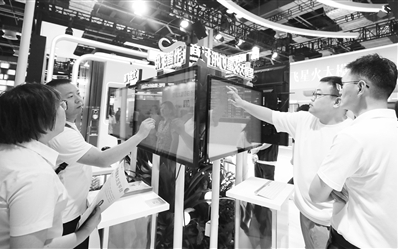 在WAIC 2024上,參觀者在某大模型演示屏前體驗交流。新華社記者 方喆攝