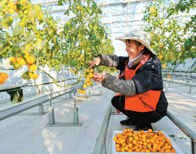 2024年12月19日,江西省瑞昌市高標準設(shè)施蔬菜示范中心,工人正在采摘西紅柿。魏東升攝(人民視覺)