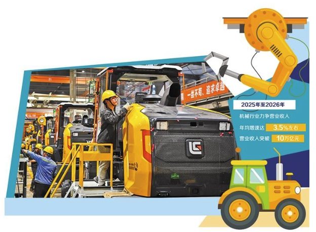 《方案》提出,2025年至2026年,機械行業(yè)運行保持平穩(wěn)向好態(tài)勢,重點產(chǎn)業(yè)鏈供應(yīng)鏈韌性和安全水平持續(xù)提升,發(fā)展質(zhì)量效益邁上新臺階,力爭營業(yè)收入年均增速達到3.5%左右,營業(yè)收入突破10萬億元。中國機械工業(yè)聯(lián)合會相關(guān)負責人表示,《方案》的目標設(shè)定,體現(xiàn)了規(guī)模與質(zhì)量并重的系統(tǒng)性思維,強調(diào)供給和需求兩側(cè)協(xié)同發(fā)力。