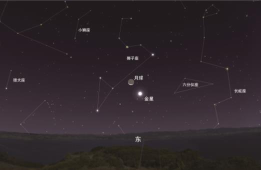 10月14日是農(nóng)歷的八月廿八,月亮以小月牙的形態(tài)與金星相合,周圍有獅子座的亮星相伴。臨近日出時(shí)天空還會(huì)被曙光染上橙黃色,暗星隱去,月牙、金星和獅子座的亮星交相輝映,觀賞性還是很不錯(cuò)的。由于當(dāng)天月亮和金星都是在凌晨升起,所以大家需要起早欣賞這個(gè)天象。