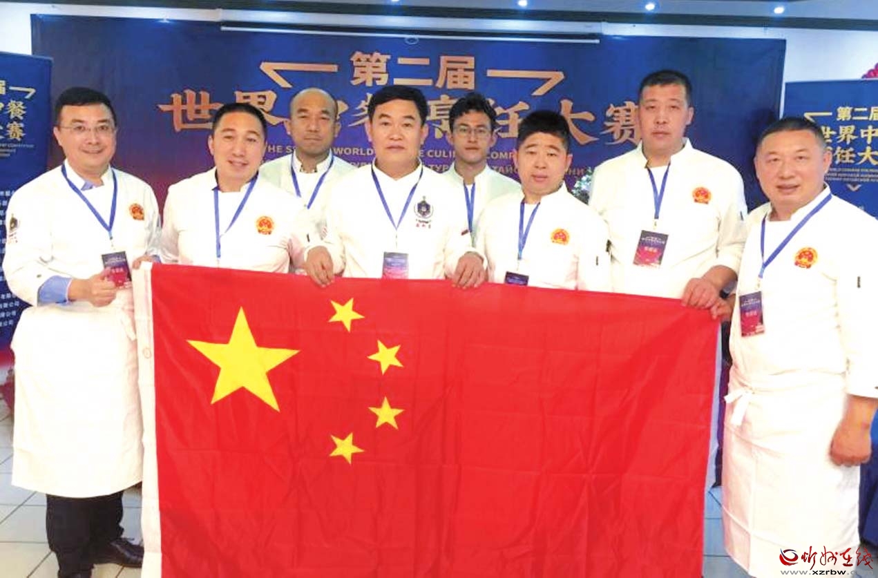 2019年10月,王力群(前排左三)帶領(lǐng)學(xué)員在莫斯科獲得了世界中餐大賽金獎