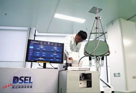 記者走進位于安徽合肥高新區(qū)的深空探測實驗室,實驗室工作人員正在調(diào)試這臺設(shè)備。