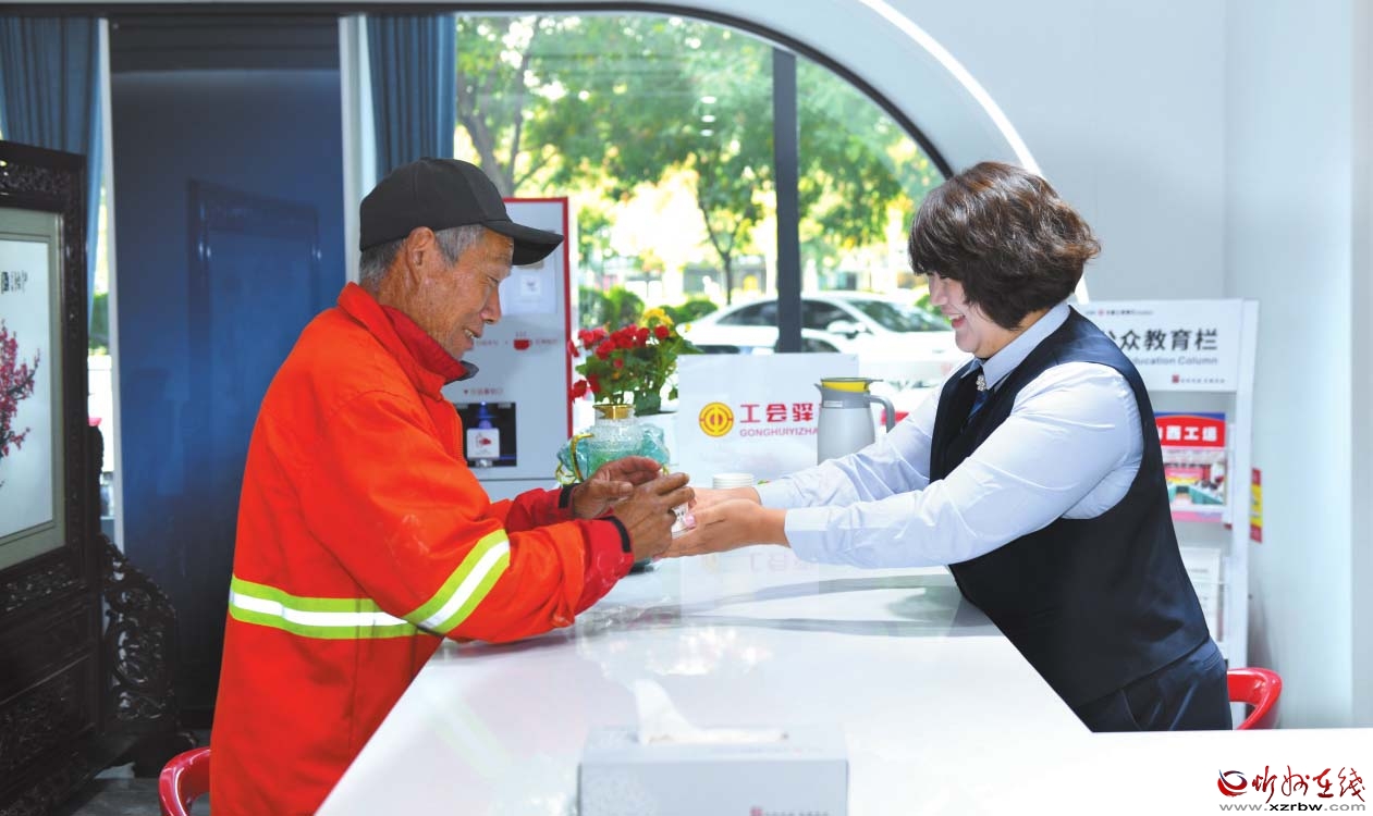 工行忻州汾源支行的“工會驛站”特別關(guān)注戶外勞動者的需求,在驛站內(nèi)設立了休息區(qū),并增設了老花鏡、急救藥箱、手機充電、免費飲用水、雨傘等設施,從細節(jié)做起,給予戶外勞動者提供夏可納涼、冬可取暖、累可歇腳、遮風避雨的溫馨服務。環(huán)衛(wèi)工李師傅對“工會驛站”的體驗贊不絕口,他說:“工會驛站真的是太有愛了,渴了進來喝口水,累了進來歇歇腳,汾源支行的服務真的很貼心?!?/p>