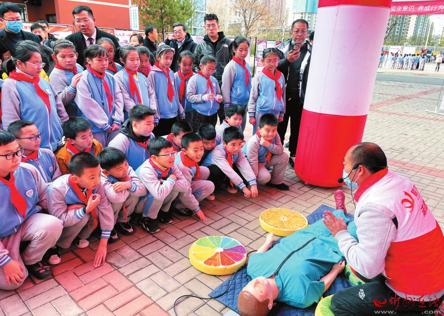 “家校平安”志愿者給學(xué)生講解安全急救知識(shí)