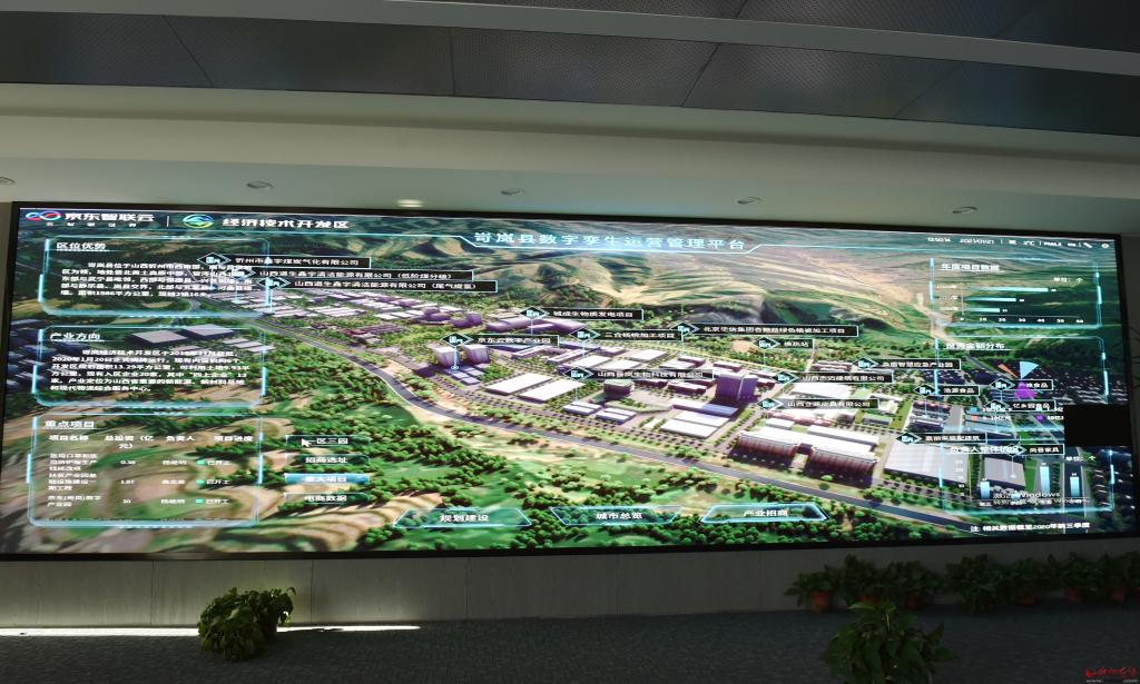 在位于岢嵐縣融媒體中心的項(xiàng)目臨時(shí)辦公地,對著占滿一堵墻的大屏幕,記者聽取了京東(岢嵐)有關(guān)業(yè)務(wù)工作人員的情況介紹。
