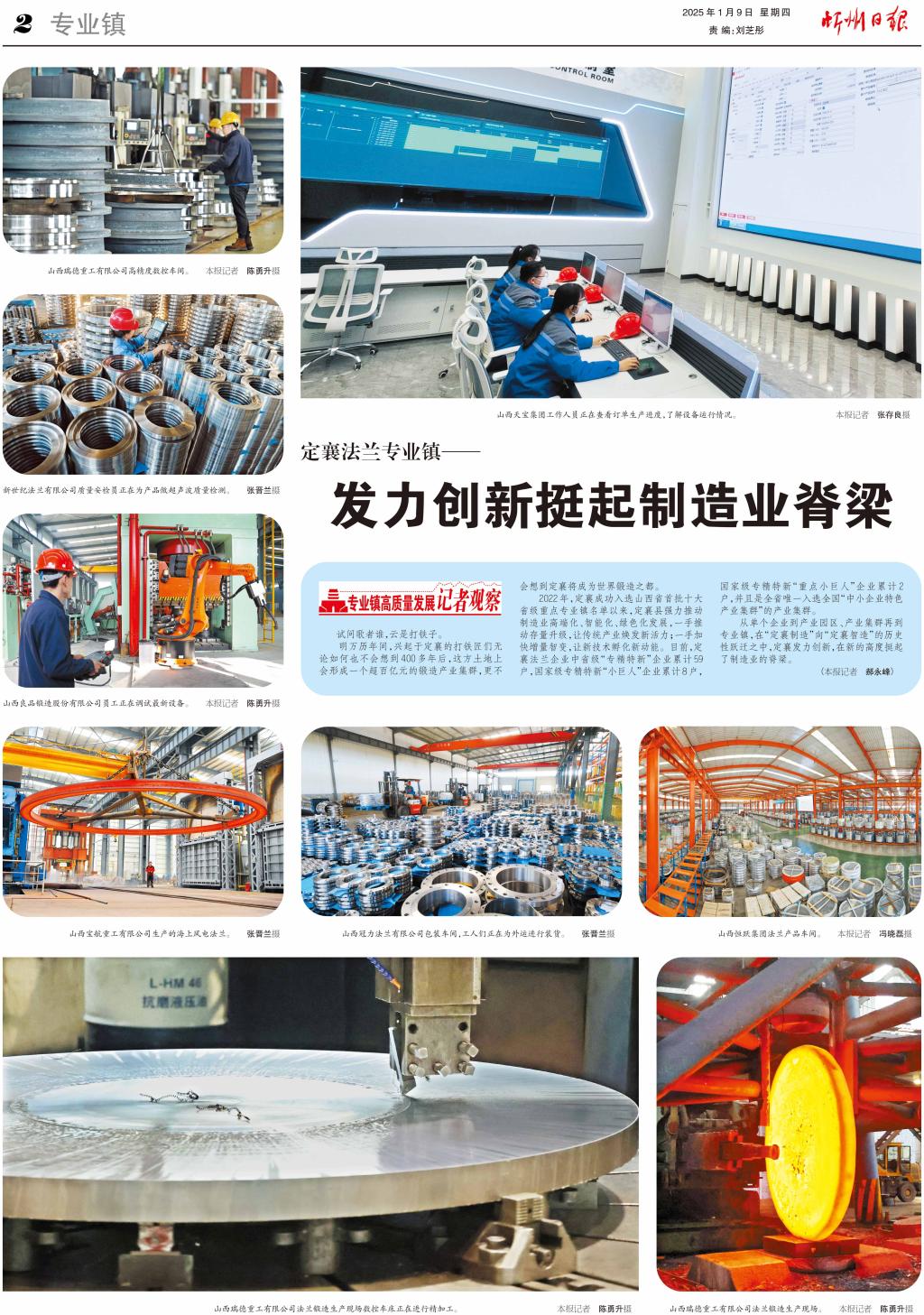 朔風(fēng)勁吹,中國鍛造之鄉(xiāng)百舸爭流千帆競。 繁華北京,定襄法蘭強(qiáng)勢上榜“國家級中小企業(yè)特色產(chǎn)業(yè)集群”并再次刷新國家級專精特新“重點(diǎn)小巨人”企業(yè)數(shù)量,成績驕人; 海南博鰲,“新華·定襄法蘭產(chǎn)業(yè)綠色發(fā)展指數(shù)”高調(diào)發(fā)布,為全國鍛造產(chǎn)業(yè)綠色低碳發(fā)展樹立標(biāo)桿; 天津港口,定襄法蘭“揚(yáng)帆出?!保呦蚴澜?,2024年前三季度,全縣已有52戶企業(yè)將業(yè)務(wù)版圖向國際擴(kuò)展…… 浪涌四方,潮起定襄。定襄,這個以法蘭鍛造聞名全國的晉北工業(yè)小城自2022年成功入選山西省首批十大省級重點(diǎn)專業(yè)鎮(zhèn)以來,就開始了在法蘭產(chǎn)業(yè)賽道上的強(qiáng)勢進(jìn)階。去年以來,定襄縣以黨的二十屆三中全會精神為指引,全面深化改革,用“高”“智”“綠”“服”的理念和行動,進(jìn)一步推進(jìn)法蘭產(chǎn)業(yè)質(zhì)量變革、效率變革、動力變革。 “高”是一種姿態(tài),更是踐行國家戰(zhàn)略的擔(dān)當(dāng)。 制造業(yè)是立國之本、興國之器、強(qiáng)國之基。定襄縣全面落實(shí)中央、省、市關(guān)于推動制造業(yè)高質(zhì)量發(fā)展的要求,以法蘭專業(yè)鎮(zhèn)建設(shè)為牽引,主動融入科技強(qiáng)國、制造強(qiáng)國、質(zhì)量強(qiáng)國等國家戰(zhàn)略,舉全縣之力、聚各方之智,帶動“定襄制造”這艘巨輪駛向更寬航道。 巨輪出海,把舵定錨。定襄縣科學(xué)制定一個目標(biāo)、兩輪驅(qū)動、三大平臺、五個中心、六大園區(qū)的“12356”發(fā)展戰(zhàn)略,明確法蘭專業(yè)鎮(zhèn)建設(shè)產(chǎn)業(yè)重點(diǎn)領(lǐng)域、戰(zhàn)略任務(wù)、發(fā)展路徑、戰(zhàn)略舉措和功能區(qū)劃等,為巨輪亮“燈塔”、定“羅盤”;先后編制《定襄法蘭專業(yè)鎮(zhèn)實(shí)施方案》《定襄法蘭專業(yè)鎮(zhèn)三年行動計劃》《定襄縣鍛造產(chǎn)業(yè)數(shù)字化、智能化發(fā)展的實(shí)施方案》等系列規(guī)劃和政策性文件,掛起“航海圖”,讓法蘭專業(yè)鎮(zhèn)建設(shè)向高坐標(biāo)布局、高緯度探索。 “智”是一種狀態(tài),也是對標(biāo)時代要求的氣魄。 產(chǎn)業(yè)躍升,離不開科技創(chuàng)新。法蘭專業(yè)鎮(zhèn)建設(shè)工作開展以來,定襄縣深刻把握新質(zhì)生產(chǎn)力的豐富內(nèi)涵與實(shí)踐要求,沿著科創(chuàng)引領(lǐng)、智造變革的路子堅定前行。 鼓勵企業(yè)開展自動化改造、梯度培育“鏈主+鏈核+專精特新”企業(yè)、全面建設(shè)創(chuàng)新平臺……一套行之有效的“組合拳”加速定襄法蘭產(chǎn)業(yè)“智能化”進(jìn)程。去年以來,定襄規(guī)上企業(yè)新增6戶,達(dá)到123戶;新增1戶國家級專精特新“小巨人”企業(yè)、2戶國家級專精特新重點(diǎn)“小巨人”企業(yè)、9戶省級專精特新企業(yè);先后培育3戶省級重點(diǎn)產(chǎn)業(yè)鏈“鏈核”企業(yè)、5戶省級重點(diǎn)產(chǎn)業(yè)鏈企業(yè)、94戶市級重點(diǎn)產(chǎn)業(yè)鏈關(guān)聯(lián)企業(yè)。定襄法蘭鍛造產(chǎn)業(yè)成功入選“國家級中小企業(yè)特色產(chǎn)業(yè)集群”,為全省唯一。 產(chǎn)學(xué)研深度融合是科技創(chuàng)新引領(lǐng)產(chǎn)業(yè)升級的關(guān)鍵一招。定襄縣在成立“定襄法蘭產(chǎn)業(yè)學(xué)院”培養(yǎng)儲備專業(yè)人才的同時,先后與重慶大學(xué)、西安交通大學(xué)、山西大學(xué)、中北大學(xué)、太原科技大學(xué)等高校建立合作關(guān)系,暢通企業(yè)與技術(shù)專家團(tuán)隊對接通道,助力法蘭產(chǎn)業(yè)由“制造”向“智造”轉(zhuǎn)變。定襄縣已建成國家級法蘭鍛造產(chǎn)品檢測中心1個、通過CNAS認(rèn)證的實(shí)驗(yàn)室8個、省級技術(shù)創(chuàng)新中心2個、省級企業(yè)技術(shù)中心16個。 老樹發(fā)新芽。在科技創(chuàng)新引領(lǐng)下,定襄法蘭專業(yè)鎮(zhèn)建設(shè)動能強(qiáng)勁,勢能充沛! “綠”是一種生態(tài),也是推動產(chǎn)業(yè)長遠(yuǎn)發(fā)展的智慧。 綠色發(fā)展是高質(zhì)量發(fā)展的底色。定襄縣在高質(zhì)量推動法蘭專業(yè)鎮(zhèn)建設(shè)中,綠色低碳的理念正貫穿產(chǎn)業(yè)發(fā)展的全過程。 該縣全力抓好能耗雙控工作,堅決遏制“兩高”項目盲目發(fā)展,積極推進(jìn)產(chǎn)業(yè)結(jié)構(gòu)、能源結(jié)構(gòu)和運(yùn)輸結(jié)構(gòu)調(diào)整,不斷優(yōu)化空間布局、調(diào)整產(chǎn)業(yè)結(jié)構(gòu),加快實(shí)現(xiàn)產(chǎn)業(yè)生態(tài)化、能源綠色化、生活低碳化;充分發(fā)揮省級數(shù)轉(zhuǎn)中心“金字招牌”作用,推動鍛造企業(yè)精益數(shù)字化建設(shè),推動財務(wù)、成本、能源與業(yè)務(wù)生產(chǎn)一體化管理,實(shí)現(xiàn)企業(yè)內(nèi)部資源的全面優(yōu)化和高效協(xié)同;搶抓大規(guī)模設(shè)備更新政策機(jī)遇,謀劃儲備工業(yè)領(lǐng)域設(shè)備更新和技術(shù)改造項目17個,總投資32.8億元。2024年,“新華·定襄法蘭綠色發(fā)展指數(shù)”正式啟動,已有4家企業(yè)被評為國家級“綠色工廠”,27戶企業(yè)入列山西省制造業(yè)領(lǐng)域設(shè)備更新獎勵名單(第四批)。 “服”是一種心態(tài),也是護(hù)航企業(yè)健康成長的