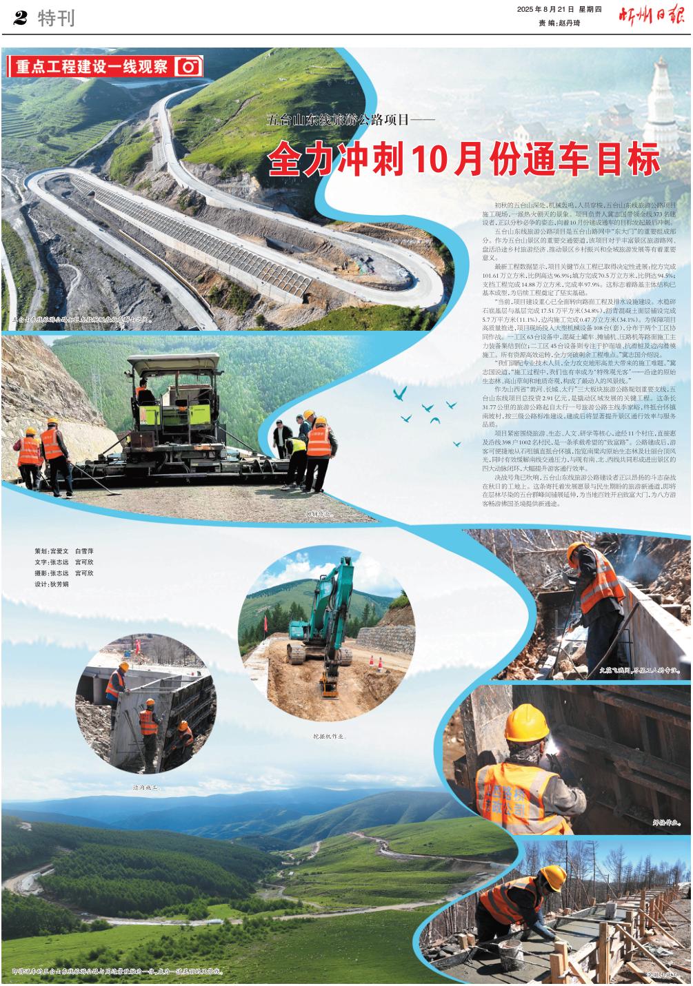 決戰(zhàn)號角已吹響,五臺山東線旅游公路建設者正以昂揚的斗志奮戰(zhàn)在秋日的工地上。這條寄托著發(fā)展愿景與民生期盼的旅游新通道,即將在層林盡染的五臺群峰間鋪展延伸,為當?shù)匕傩臻_啟致富大門,為八方游客暢游佛國圣境提供新通途。