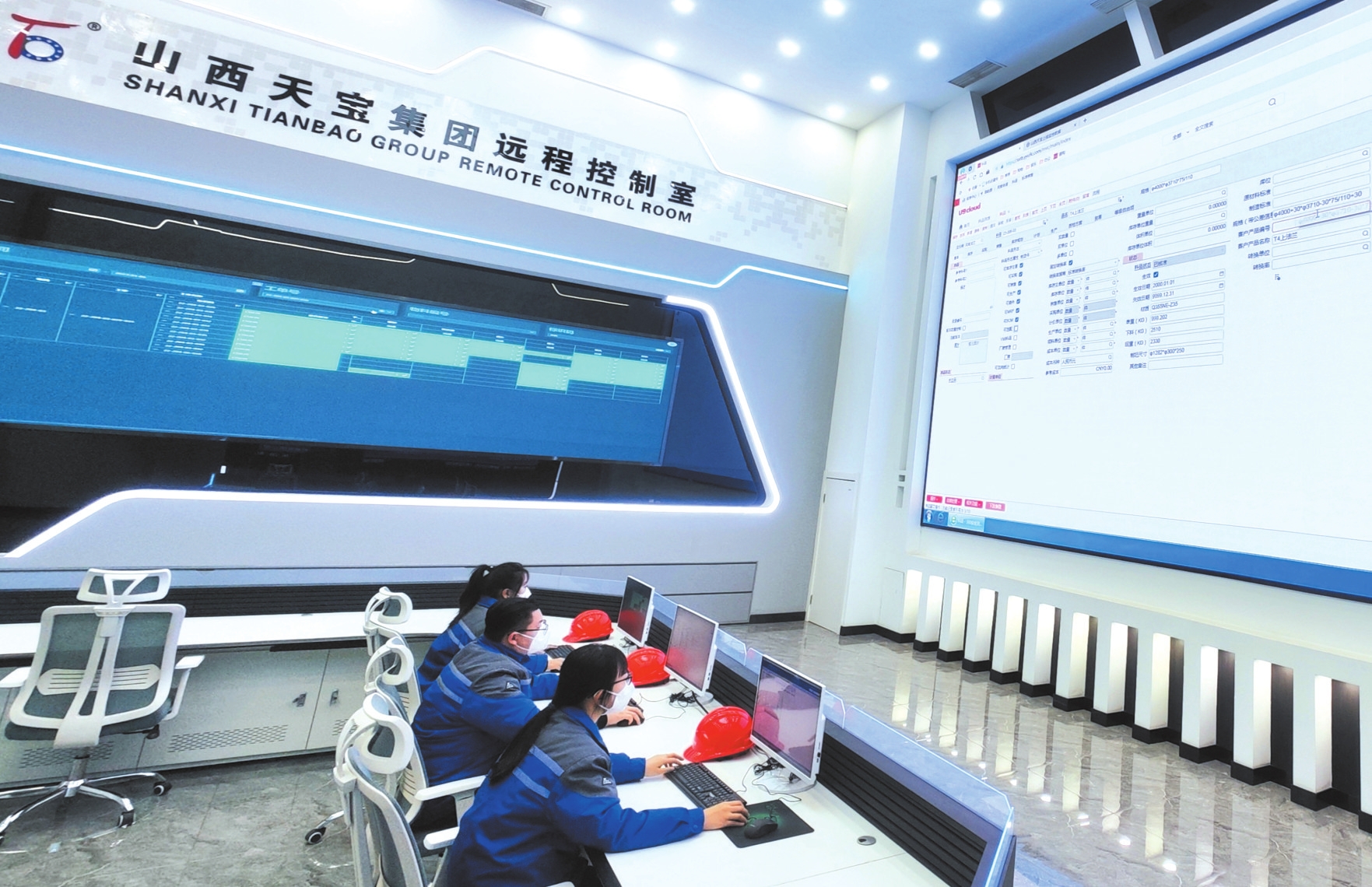 山西天寶集團(tuán)工作人員正在查看訂單生產(chǎn)進(jìn)度,了解設(shè)備運(yùn)行情況。本報(bào)記者 張存良攝
