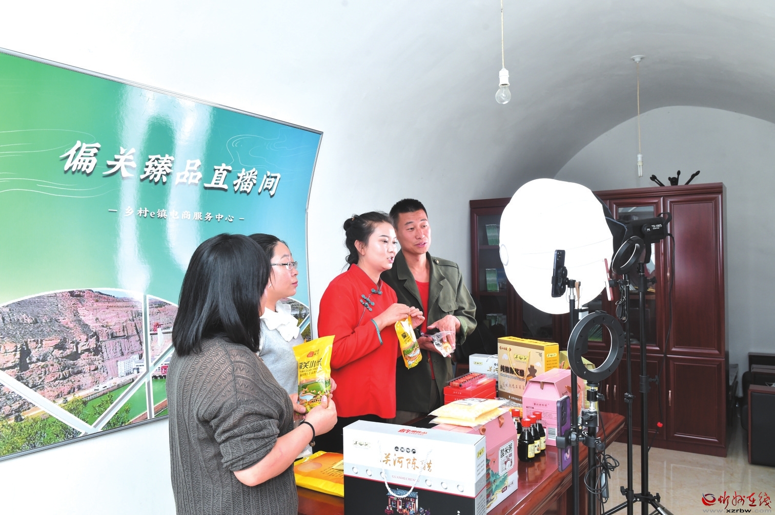 偏關鄉(xiāng)村e鎮(zhèn)公共服務中心直播帶貨現場。本報記者 馮曉磊 攝