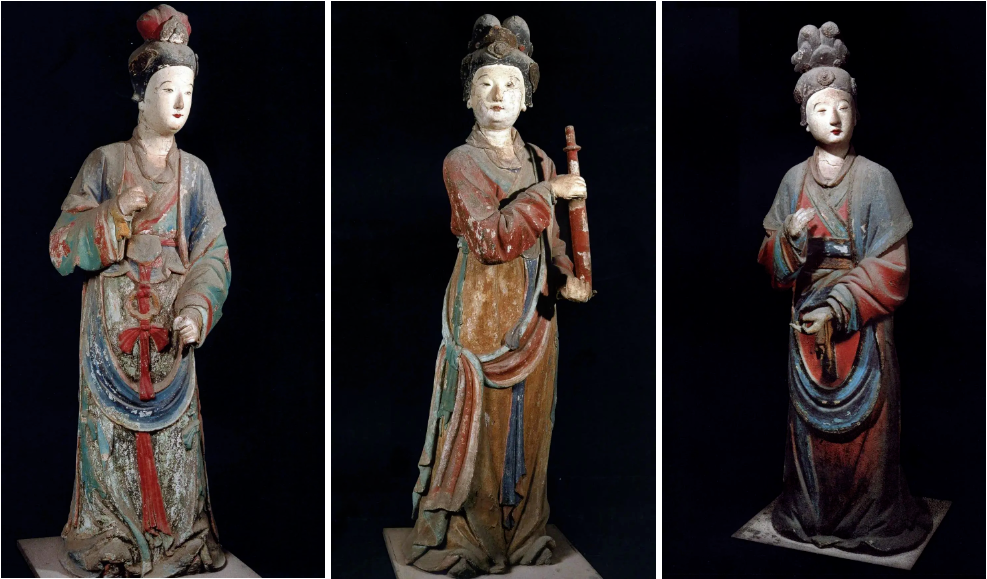 ▲晉祠圣母殿侍女像 “一千年前,她搬進(jìn)了一座大殿,進(jìn)深六間,面闊七間,是她不曾想象的奢華,還有望到脖子酸的牌匾,懸甕山麓,晉水發(fā)源,是祭祀西周晉國(guó)第一任諸侯姬虞的祠堂——晉祠?!痹凇度绻麌?guó)寶會(huì)說(shuō)話》第四季第13集中,全景呈現(xiàn)了晉祠圣母殿侍女像的文物故事。 晉祠圣母殿侍女像作于北宋元佑年間,約1082年左右,是晉祠彩塑中最出色的一組人物塑像。伴隨著微弱的光,一尊尊宋代侍女塑像便緩緩走進(jìn)了紀(jì)錄片的鏡頭。 圣母殿中,主角端坐中間,頭戴花冠,穿寬袖霞帔,是宋代貴族女子的標(biāo)志性裝束。42名侍從共同服侍圣母。她們,“不算芳華絕代,小眼睛小嘴,眉距有些許寬,鼻梁骨稍低,怯生生的鵝蛋臉梳了最流行的朝天髻,腰間掛了絳環(huán),瘦弱的肩膀終究撐不住褙子,綢緞滑落,顯得稚嫩不安。她們站著、看著,和我們打著啞謎。” “一千年,肩膀落滿塵灰,這些侍女形象算不上那個(gè)時(shí)代最美的容顏,卻因她們的容顏創(chuàng)造了美的時(shí)代”。這些取材于宋人形象的雕塑,真實(shí)記錄了那時(shí)人們的喜怒哀樂(lè),至今面容清晰?!凹?xì)膩的五官,細(xì)微的情緒,暗示著唐宋之際雕塑理念的巨變,從歌頌神的偉力轉(zhuǎn)而刻畫(huà)人的心理,從仰望神性到凝視人性,普通人成為雕塑熱衷表達(dá)的主題?!?/p> “神仙是什么樣子”