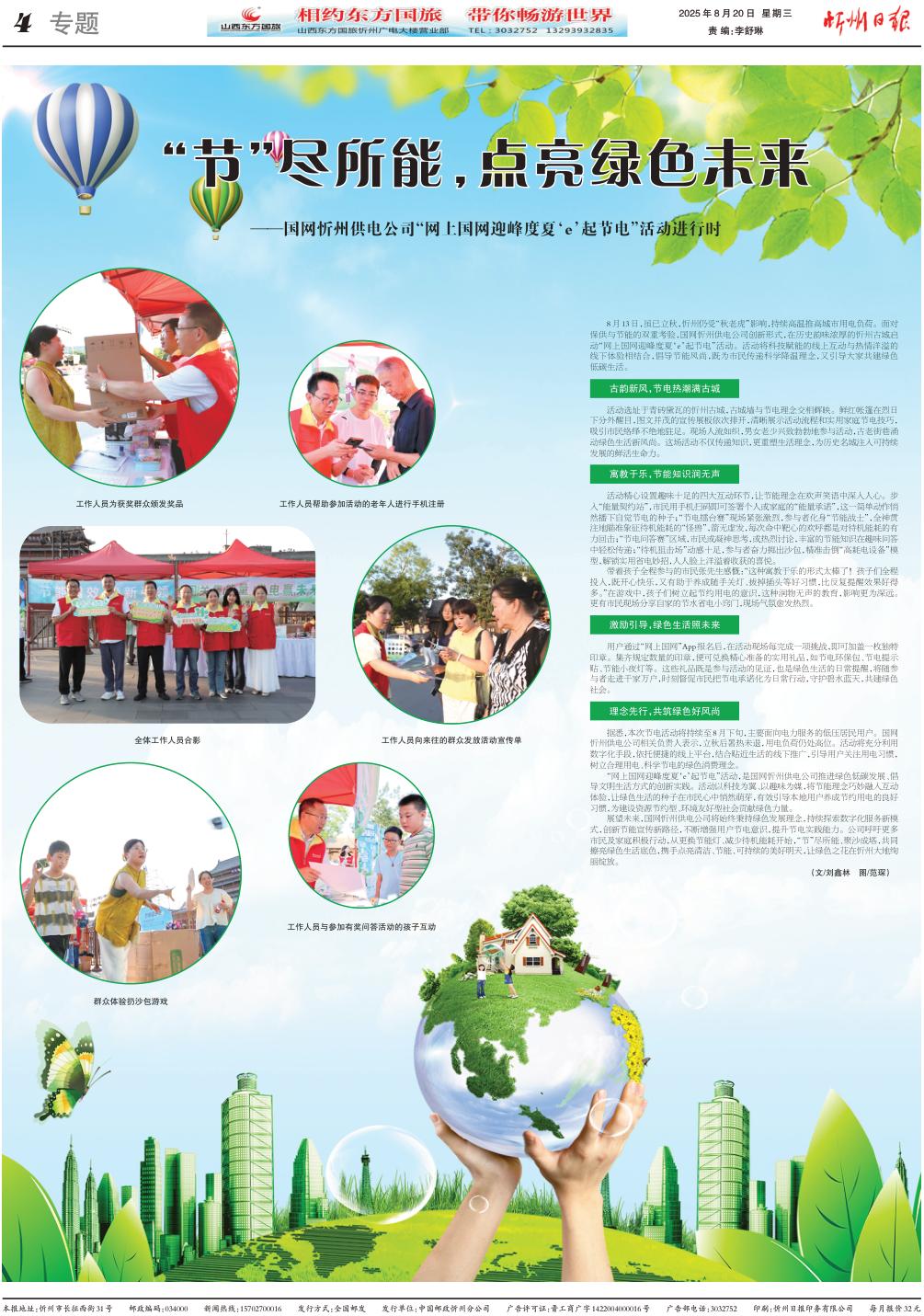 8月13日,雖已立秋,忻州仍受“秋老虎”影響,持續(xù)高溫推高城市用電負荷。面對保供與節(jié)能的雙重考驗,國網(wǎng)忻州供電公司創(chuàng)新形式,在歷史韻味濃厚的忻州古城啟動“網(wǎng)上國網(wǎng)迎峰度夏‘e’起節(jié)電”活動?;顒訉⒖萍假x能的線上互動與熱情洋溢的線下體驗相結(jié)合,倡導(dǎo)節(jié)能風(fēng)尚,既為市民傳遞科學(xué)降溫理念,又引導(dǎo)大家共建綠色低碳生活。