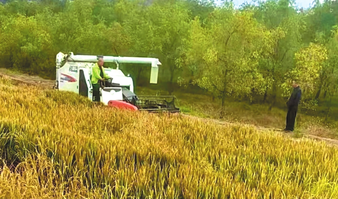金秋時節(jié),保德縣馮家川鄉(xiāng)的20余畝鹽堿地試種稻田里,金黃稻穗壓彎了稻稈,微風拂過,掀起層層“金浪”。隨著聯(lián)合收割機的轟鳴聲響起,成片水稻被快速切割、脫粒、清選,飽滿的谷粒源源不斷地被送入儲糧箱,標志著當?shù)厥状嘻}堿地水稻試種迎來豐收。經(jīng)測算,畝產(chǎn)達830斤左右,順利達成預期產(chǎn)量目標。