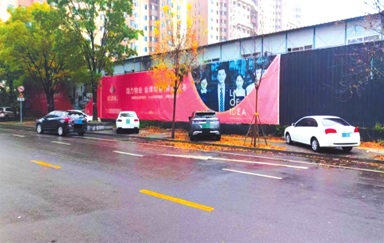 忻府區(qū)?;勐穱π鲁侨跂|側車輛占用人行通道。