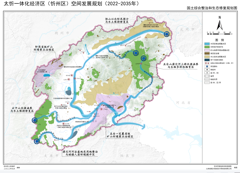 堅持把全方位推動高質(zhì)量發(fā)展作為總體目標(biāo),把一體化發(fā)展作為根本遵循,以基礎(chǔ)設(shè)施建設(shè)為先導(dǎo),以產(chǎn)業(yè)園區(qū)為載體,以區(qū)域文化為紐帶,將忻州區(qū)打造為“融入京津冀和服務(wù)大循環(huán)的門戶樞紐、山西中部城市群先進(jìn)制造高地、世界級文化休閑康養(yǎng)目的地、有機(jī)旱作農(nóng)業(yè)優(yōu)勢特色產(chǎn)業(yè)標(biāo)桿地、生態(tài)秀美的高品質(zhì)宜居地”。到2025年,國土空間開發(fā)與保護(hù)的協(xié)調(diào)性大幅提升,山西中部城市群“北引擎”打造初見成效;到2035年,人與自然和諧共生的國土空間格局基本形成。
