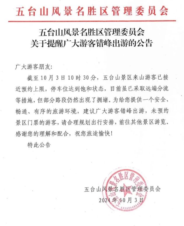 五臺山最新公告!
