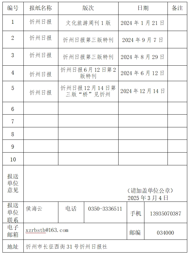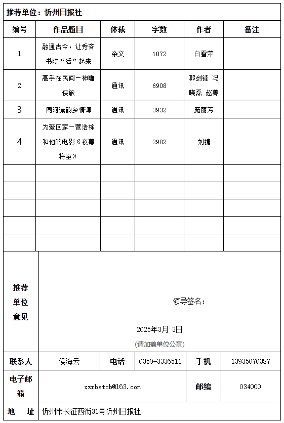 經(jīng)忻州日?qǐng)?bào)社編委會(huì)研究決定,以下作品擬推薦申評(píng)第34屆山西新聞獎(jiǎng),現(xiàn)予以公示。有反對(duì)意見者,請(qǐng)將反對(duì)意見書面報(bào)至統(tǒng)計(jì)考核部。