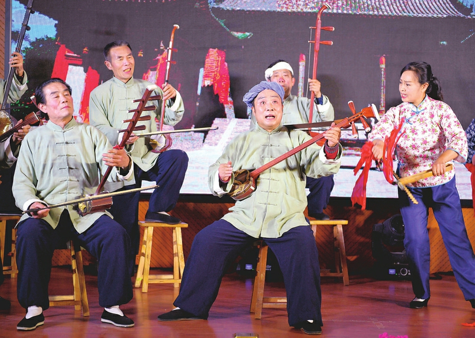 1月10日晚,運城市稷山縣的民間藝人在表演稷山老調(diào)《敬獻稷王》。稷山老調(diào),又叫稷山古琴書,是一種具有地方特色的曲藝唱腔,其內(nèi)容豐富,曲調(diào)悠揚,唱腔激昂,通俗易懂,至今已有二百多年歷史。稷山老調(diào)表演者主要由當?shù)孛に嚾私M成,演員舉手投足、說唱間散發(fā)著濃郁的鄉(xiāng)土氣息,配合四胡、二胡、笛子、三弦、小揚琴、鼓、快板等樂器的彈奏和擊打,給人以粗獷高亢、詼諧幽默的感覺,深受稷山乃至晉南民眾喜聞樂見。稷山老調(diào)流行于稷山、新絳、河津、鄉(xiāng)寧等地,多在登高節(jié)、廟會祭祀和祈?;顒又醒莩?,表達人們祈求風調(diào)雨順、五谷豐登、家庭和睦的美好愿望。