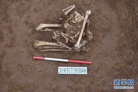 這是在河南濟(jì)源柴莊遺址發(fā)現(xiàn)的罕見(jiàn)人祭遺存(資料照片)。新華社發(fā)(河南省文物考古研究院供圖)