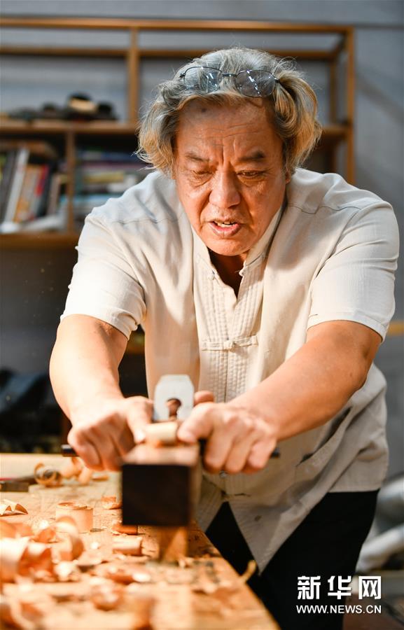 8月25日,在天津職業(yè)大學(xué)辛全生大師木藝工作室,辛全生在用刨刀刮料。今年62歲的辛全生是天津市南開區(qū)傳統(tǒng)木工榫卯技藝的非遺代表性項目傳承人。2019年9月,天津職業(yè)大學(xué)為發(fā)展并傳承木工技藝,邀請辛全生作為老師給學(xué)生們授課,負(fù)責(zé)教授學(xué)生們榫卯結(jié)構(gòu)知識和木藝家具制作等實用技巧,并于2019年底在校內(nèi)建立辛全生大師木藝工作室。 辛全生出生于匠人家庭,他聽從父親的建議從16歲開始學(xué)習(xí)木工。40余年的木工生涯,辛全生經(jīng)歷過木工行業(yè)曾經(jīng)的紅火和后來的逐漸衰落,也曾在最艱難的時候做過別的營生。但無論如何,辛全生始終忘不了自己的木工身份?!袄献孀诹粝聛淼臇|西不能丟了,要傳承下去,否則將來的后代誰都不知道木工榫卯技術(shù)的存在了?!毙寥f。 近年來,有近百名不同職業(yè)、不同年齡的人慕名前來拜辛全生為師,學(xué)習(xí)傳統(tǒng)木工榫卯技藝。辛全生說,我會讓徒弟們學(xué)好木工榫卯技藝,讓中國的傳統(tǒng)手藝發(fā)揚光大。新華社發(fā)(孫凡越 攝)
