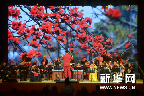 大型原創(chuàng)廣東音樂《紅棉頌》演奏 “整臺節(jié)目著力推廣東莞人文歷史的底蘊魅力,展示粵劇傳承發(fā)展成果,鼓舞東莞人民在新時代繼續(xù)努力進取、奮發(fā)向上,為建設‘灣區(qū)都市、品質(zhì)東莞’增添光彩?!薄盎泟↑S金周”承辦單位東莞粵劇發(fā)展中心負責人、本土粵曲名家陳映荷介紹,節(jié)目緊扣時代脈搏,除了內(nèi)容的選擇,還體現(xiàn)在形式的創(chuàng)新方面。