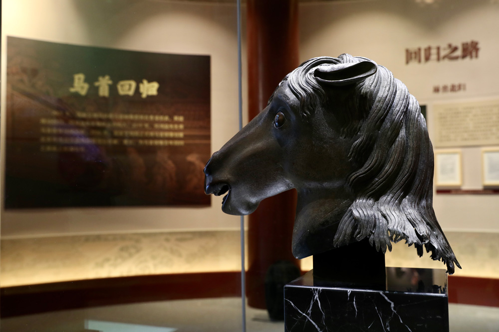在圓明園展出的馬首銅像。人民網(wǎng) 韋衍行攝