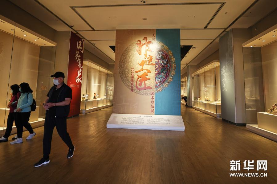 12月30日,人們在海南省博物館參觀2020海南自貿港大國非遺工匠藝術珍品展。近日,2020海南自貿港大國非遺工匠藝術珍品展在海南省博物館開展,展覽分為大國非遺工匠藝術珍品展和技藝傳承展兩大展區(qū)。珍品展展出北京景泰藍、雕漆、景德鎮(zhèn)陶瓷、海南工藝美術代表作品等具有代表性的非物質文化遺產作品,在技藝傳承展區(qū),非遺手工藝人現(xiàn)場展演展示黎錦、苗繡、雙面繡、木雕等技法。(新華社記者 張麗蕓 攝)