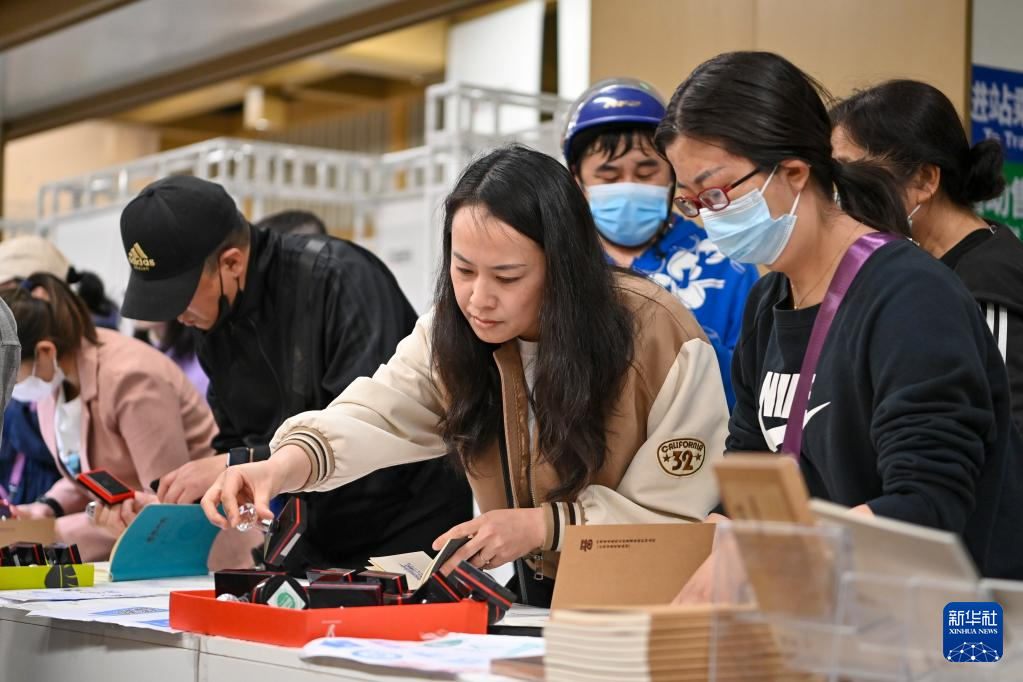 5月9日,在太原地鐵2號線大南門站,市民在第三屆“印記太原”文化創(chuàng)意設(shè)計展上體驗(yàn)古城游集章活動。
