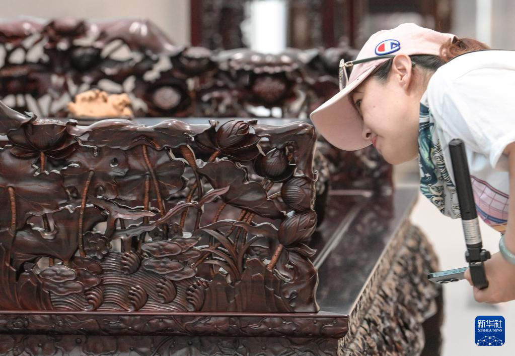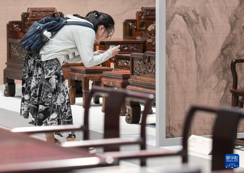 當日,“心·傳——陳玉樹新時代古典家具藝術(shù)展”在位于北京的中國工藝美術(shù)館、中國非物質(zhì)文化遺產(chǎn)館舉辦,展出了高級工藝美術(shù)師陳玉樹近年創(chuàng)作的20套古典家具,展現(xiàn)出中國木作技藝之美。新華社記者 李賀 攝