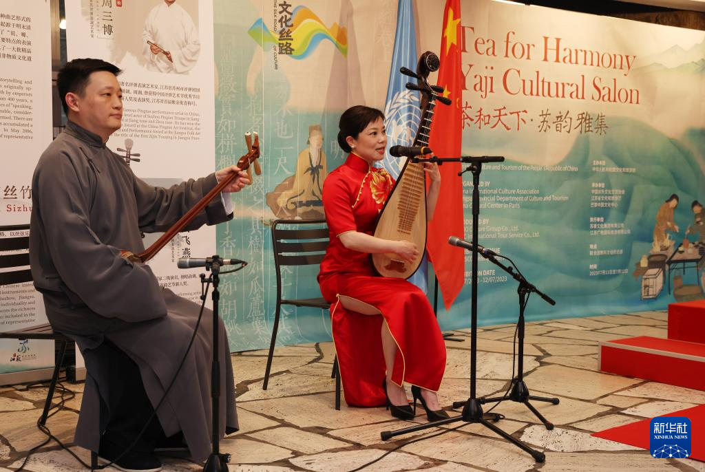 新華社巴黎7月11日電(記者張百慧)“茶和天下·蘇韻雅集”活動(dòng)11日在位于法國(guó)巴黎的聯(lián)合國(guó)教科文組織總部舉行,通過主題展、實(shí)物展和文藝表演等形式,全面介紹了茶的歷史、茶與生活、茶與文化、茶與觀光等內(nèi)容。