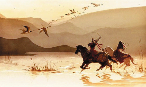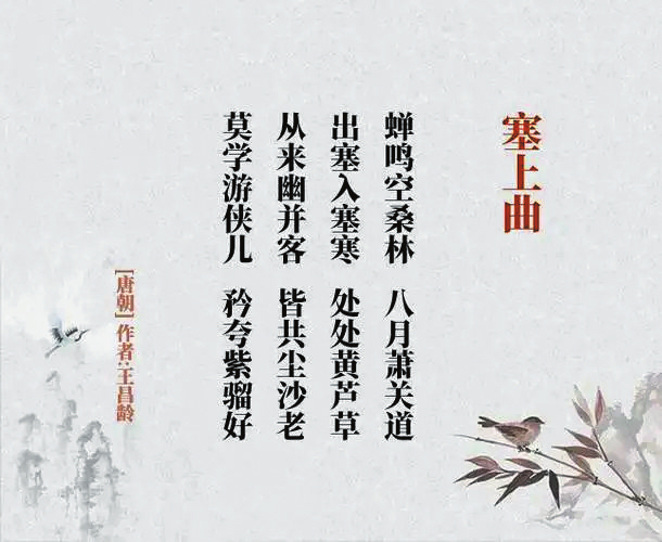 《塞上曲》 王昌齡 李頎、王昌齡這兩位盛唐時邊塞詩人的代表,不知是否曾結(jié)伴同游雁門關(guān),但可以確定的是兩人都選擇了以雁門為題。 《塞下曲》唐(李頎):“黃云雁門郡,日暮風(fēng)沙里。千騎黑貂裘,皆稱羽林子。金笳吹朔雪,鐵馬嘶云水。帳下飲蒲萄,平生寸心是?!?/p> 《塞上曲》唐(王昌齡):“蟬鳴空桑林,八月蕭關(guān)道。出塞入塞寒,處處黃蘆草。從來幽并客,皆共塵沙老。莫學(xué)游俠兒,矜夸紫騮好。”詩中的塞上、塞下,說穿了就是關(guān)外和關(guān)內(nèi)。但,其實景象沒什么特別,黃云、風(fēng)沙、駿馬、朔雪、美酒、桑林、關(guān)道、蘆草、沙場,也似乎只有這些才能更符合邊塞詩人的審美。而“雁門關(guān)”成了李頎、王昌齡這對好友的共同命題。