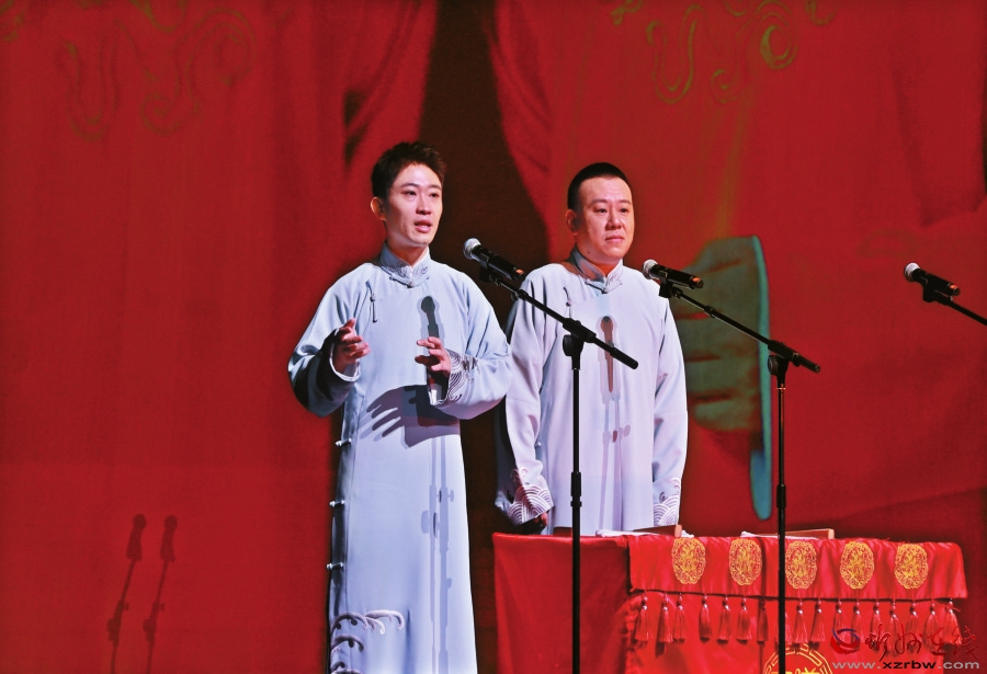 “金霏曦比”相聲專場 張存良 攝 戲劇月的開幕大戲是詩樂舞大秀《天下歸心》,作品在舞臺空間上立體展示了濃郁國風(fēng)特色的時空布局和視覺風(fēng)格,劇場內(nèi)敦煌飛天式實景呈現(xiàn),“詩”有相、“樂”有形、“舞”傳神,再現(xiàn)了雁門關(guān)外的金戈鐵馬,以德化民的泰安繁榮,流傳千年的文景之治……作品通過大漢王朝和匈奴之間在雁門關(guān)地域,從戰(zhàn)爭到盟約、再到通婚的歷史故事,表現(xiàn)出“天下一家”的理念。觀眾身臨其境地享受到了一場不可多得的視聽和精神盛宴。該劇也是忻州大劇院建成以來首次對外公開演出。 《粉墨春秋》這部舞劇由山西藝術(shù)職業(yè)學(xué)院出品,華晉舞劇團(tuán)承擔(dān)演出,全體主創(chuàng)人員12年磨一劍,自2011年首演以來已在海內(nèi)外演出數(shù)百場。這次來忻演出恰為該劇12周年紀(jì)念專場,更為戲劇月的完美謝幕增添了濃重一筆。