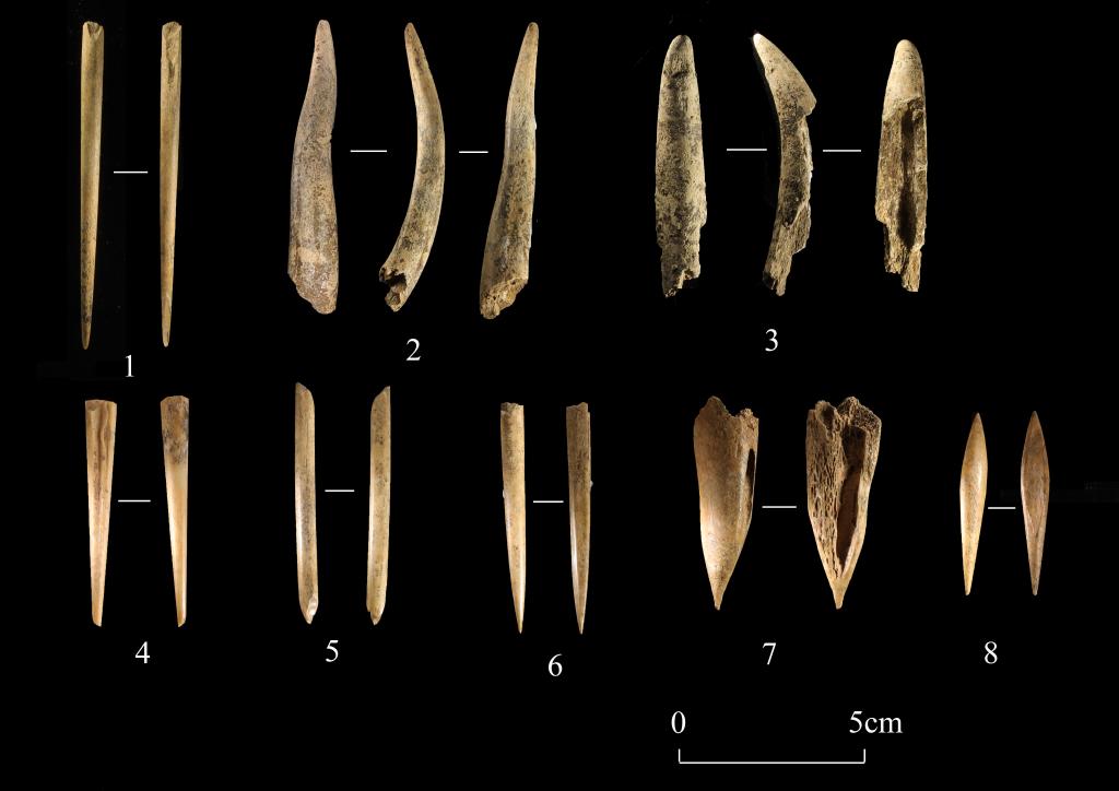 青池遺址第II發(fā)掘區(qū)出土的骨針、骨錐和骨角器(新石器時代)。天津市文化遺產保護中心供圖