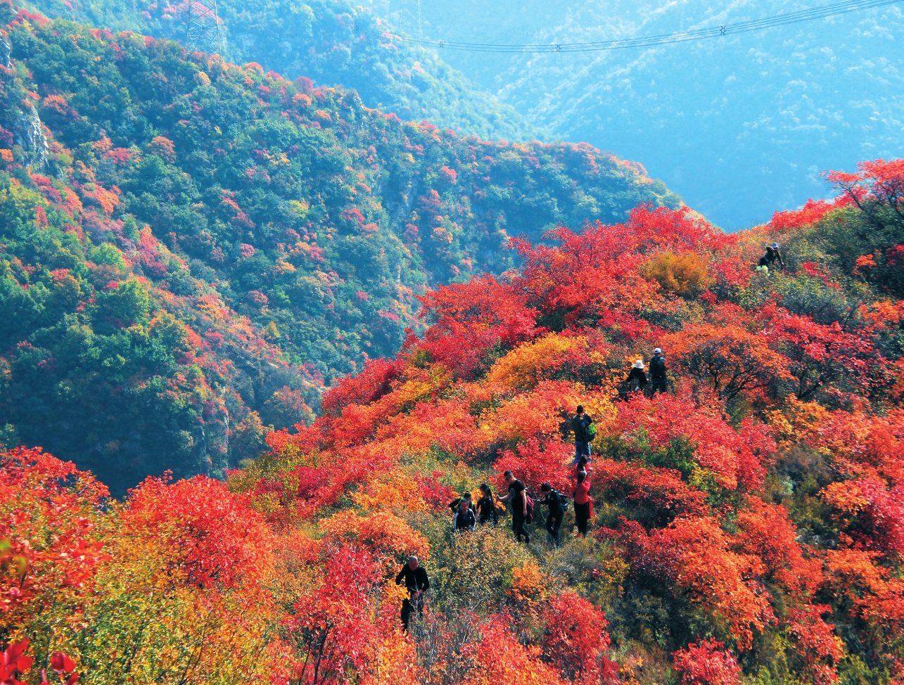 紅葉谷是一條長(zhǎng)達(dá)十幾公里的狹長(zhǎng)山谷,開(kāi)闊處大如庭院,狹窄處頭頂只露一線天空。每到秋季,紅葉樹仿佛約好似的于山谷間競(jìng)相爭(zhēng)艷,紅色或淺或深,紅綠相間、紅黃浸染,一片紅葉繽紛的世界。