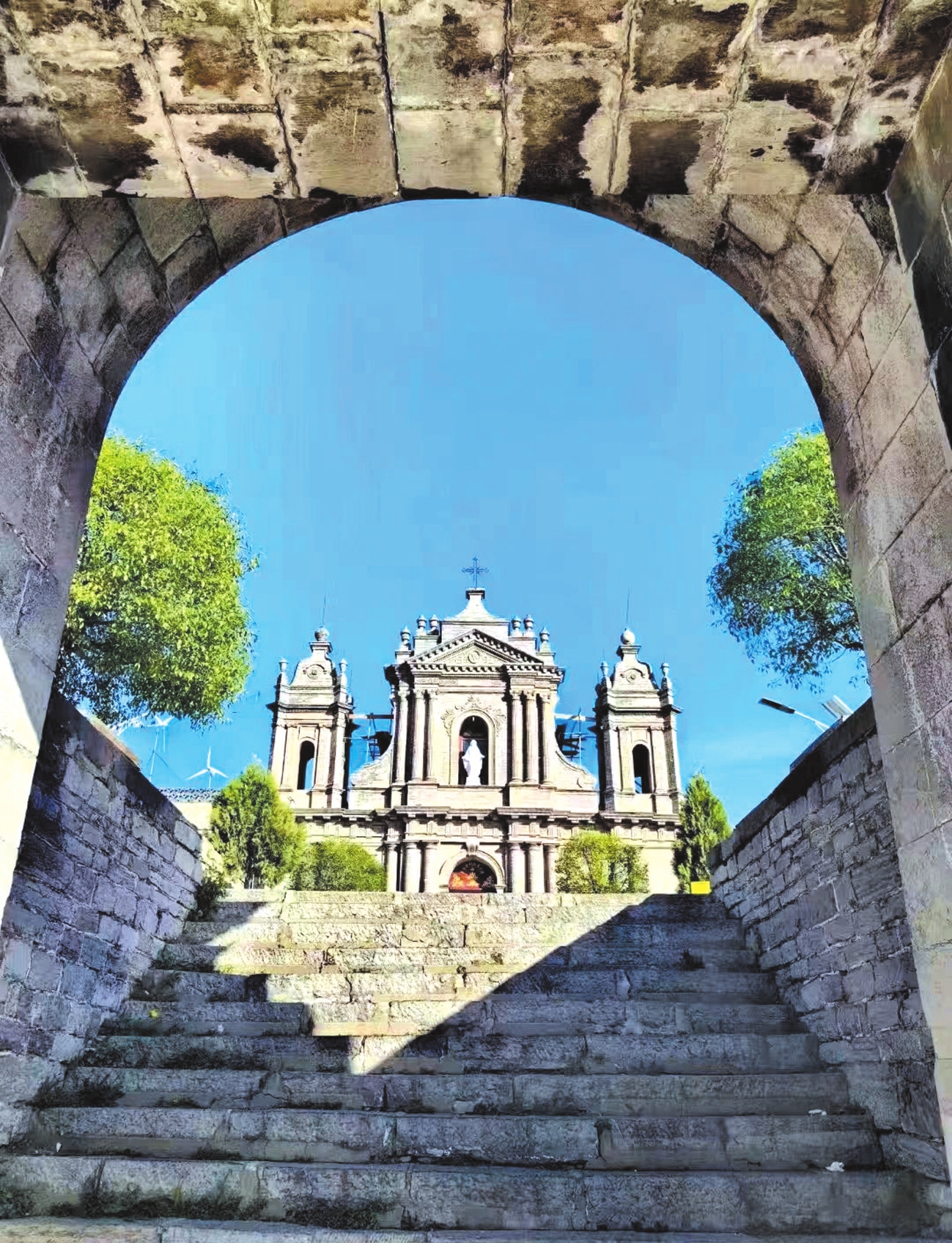 這座教堂始建于18世紀(jì)70年代,占地達(dá)三萬(wàn)平方米。1897年—1898年間,意大利籍主教艾士杰與建筑師李有剛運(yùn)用當(dāng)?shù)仄胀ùu石,奇跡般建造出一座異國(guó)風(fēng)情的高山城堡。教堂主體建筑簡(jiǎn)練垂直,頂部裝飾方圓相間,數(shù)不清的十字架直指云天。內(nèi)部則完全是西式的雕像、壁畫和教務(wù)活動(dòng),讓人恍如置身歐洲。