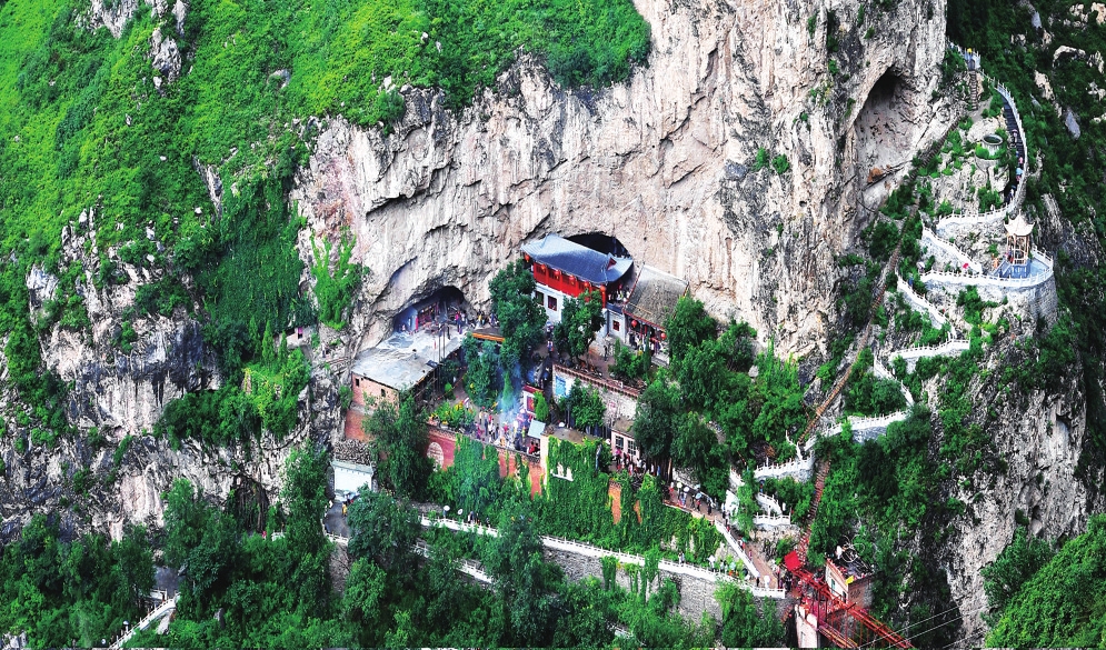 禹王洞坐落在忻州城南20公里的系舟山腰,一座巨大的三角形洞口鑲嵌于懸崖峭壁之上,海拔1768米。舊地方志稱其為“仙人洞”,直到一段治水傳說(shuō)才賦予了它新的名字。
