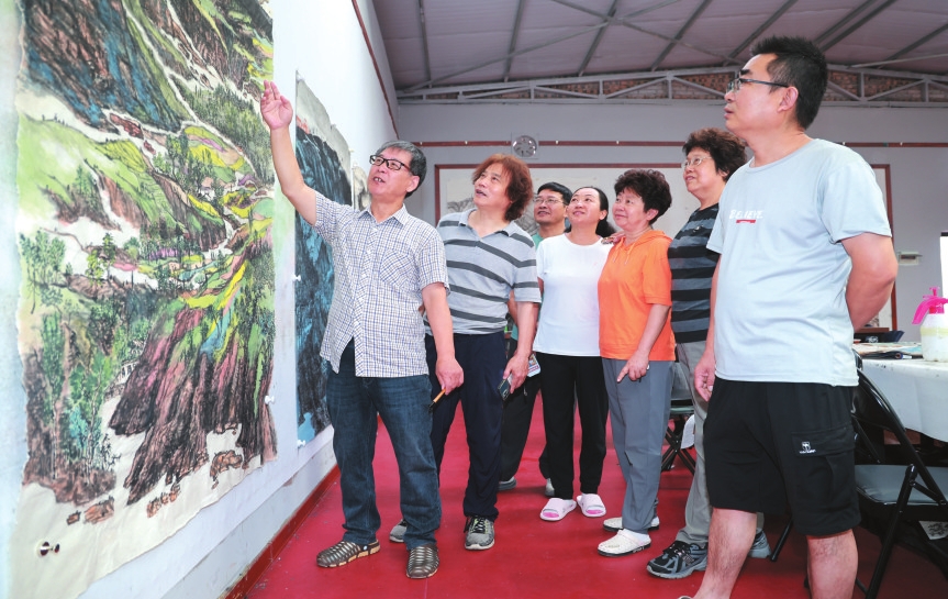 連綿的山巒、錯落的民居、獨特的虎斑地貌、古樸的窯洞與層疊的梯田在藝術家筆下一一蘇醒。陜西女畫家祝秀琴初次來到趙家溝便被深深吸引:“這里村落風貌保存完好,老樹、干柴、石頭皆是風景,處處入畫?!痹谒壑?,趙家溝不僅擁有獨特的自然稟賦與豐富的旅游資源,其寫生產(chǎn)業(yè)鏈的完備更令人贊嘆——從食宿安排到寫生用具,從戶外寫生點到室內(nèi)畫室研討,一應俱全。