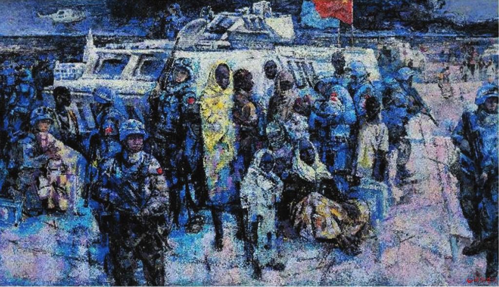 在續(xù)鶴賢眾多的作品中,從畫面表現(xiàn)效果方面,我是比較喜歡《和平使命——藍(lán)色交響曲》這幅作品的。無論畫面構(gòu)圖、色彩關(guān)系,還是人物造型以及表現(xiàn)技巧,都堪稱完美。畫面中無論人物形象、動(dòng)態(tài)、表情,還是人與自然背景,都處在一種和諧美好的關(guān)系中,從一個(gè)新的角度給予美好詮釋。這幅作品表現(xiàn)的是我們的維和部隊(duì)“子弟兵”以自己的生命守護(hù)著世界和平,講述著構(gòu)建人類命運(yùn)共同體的大國(guó)情懷。 (邢晨聲 文) (責(zé)任編輯:盧相?。?/span> |